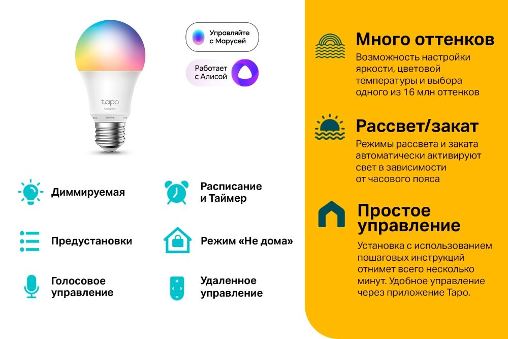 | Управление | Приложение Tapo, расписания/таймеры/сцены |